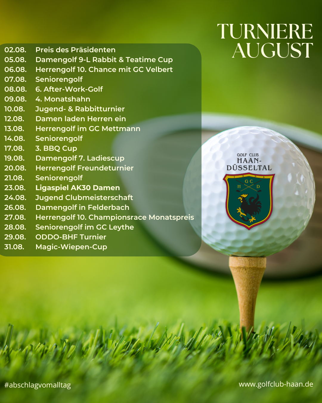 Turnierübersicht August 2025